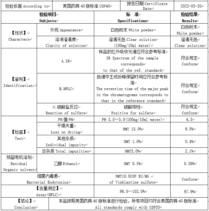 英文名稱:Vinblastine sulfate